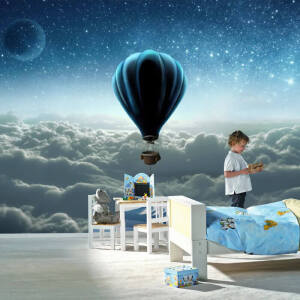 Uçan Balonlu Çocuk Odası Duvar Kağıdı